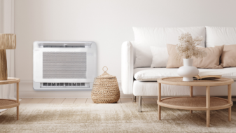 Animair Gamma 40 är en golvplacerad modell som förenar effektiv värme och kyla med ett diskret, kompakt utförande. Den är utvecklad för nordiska förhållanden och levererar stabil prestanda även när temperaturen kryper ner under noll. De dubbla luftutblåsen låter dig välja om luftflödet ska gå uppåt och nedåt – eller enbart nedåt – vilket tar vara på att varm luft stiger och ger en jämn, behaglig temperatur i hela rummet.